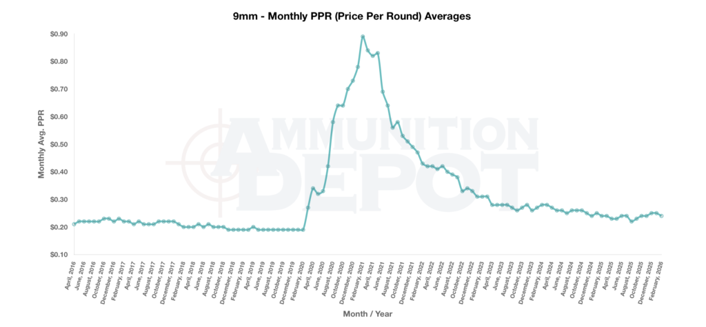 Since the peak panic of 2020–2021, ammunition prices have steadily fallen. Shelves are stocked again. Deals are back. The urgency is gone.